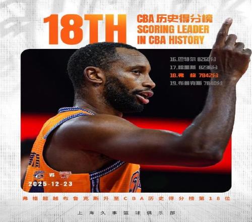 此役过后,弗格在CBA生涯的总得分来到了7842分,超越广东功勋外援马尚-布鲁克斯,升至历史第18位。在他身前的是四川队冠军外援麦克-哈里斯,后者还领先弗格394分。