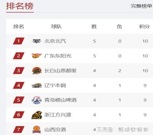 目前,CBA积分榜上,北京队和广东队在争夺榜首的位置,两队的战绩都是5胜0负,保持不败金身。北京队以5胜0负,排在积分榜第一位,广东队则紧随其后,排在积分榜第2名。这两支球队目前士气正旺,分别收获了5连胜。在接下来的几轮比赛,北京队和广东队都将迎来恶战,北京队需要面对卫冕冠军广厦队,而广东队则要迎战山西队。此外,北京队和广东队,他们还有一场硬碰硬,直接对话的比赛。