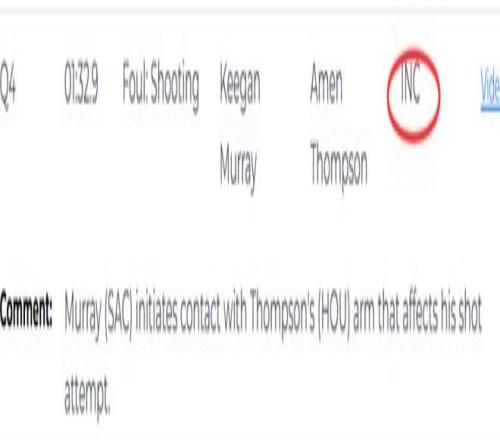 第二次是漏判,发生在距离第四节结束还有1分32秒,国王的穆雷在防守时与火箭的汤普森的手臂发生接触,干扰了后者的投篮动作,这应该吹防守犯规。这次漏判是国王获利,火箭吃亏。