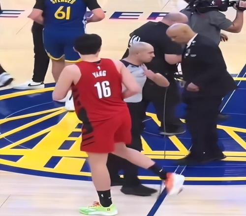 而且更重要的是一个新秀、年轻人能够这么拼命,不光是自己的队友,教练都已经认可了杨瀚森的表现,对面的裁判都已经认可了他。本场结束的时候可以看到这样一个镜头,双方的球员去握手和互相拥抱,而杨瀚森在路过裁判时,身边的光头裁判主动向小杨竖起大拇指。他也是认可了硬汉杨瀚森的表现,真的太硬了。