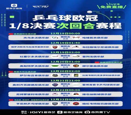 2025/26赛季欧洲乒乓球联盟(ETTU)男子欧冠联赛展开16强赛次回合的争夺。首回合比赛已屡现逆转、爆冷与个人高光时刻,各支俱乐部将向八强席位发起最后的冲击。25/26赛季乒乓球欧冠,爱奇艺体育免费直播焦点对决。