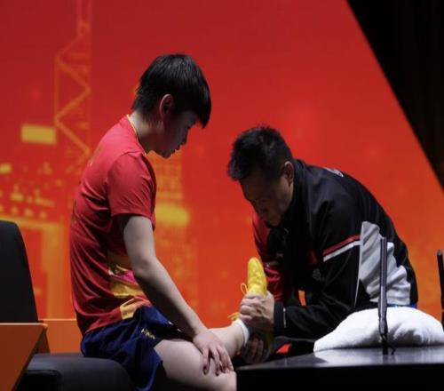 12月13日,孙颖莎在比赛中接受治疗。新华社发(吕小炜摄)