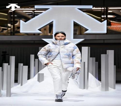 这批服装造型中,不只有品牌核心的单板、双板滑雪产品线,还有非遗香云纱面料款、ALLTERRAIN系列、与艺术家Daniel Arsham的联名系列产品等,从专业滑雪到机能风尚均有涉猎,展现了品牌适配不同时尚风格、不同场景穿搭的掌控力。