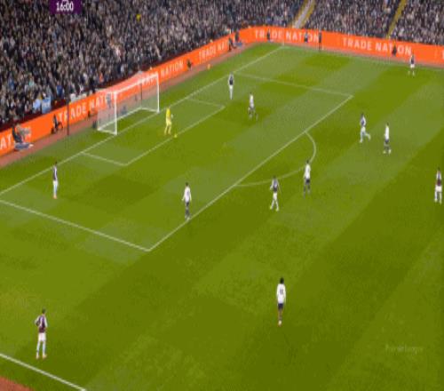 只不过这次的第一轮进攻没有成功,但在第二轮进攻里,蒂勒曼斯在达洛特并不严密的防守下送出传中,沃特金斯抢出前点,让球落到了罗杰斯的脚下,然后让第一球再重现一次: