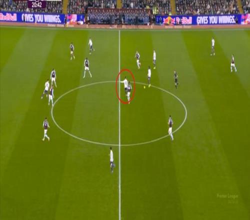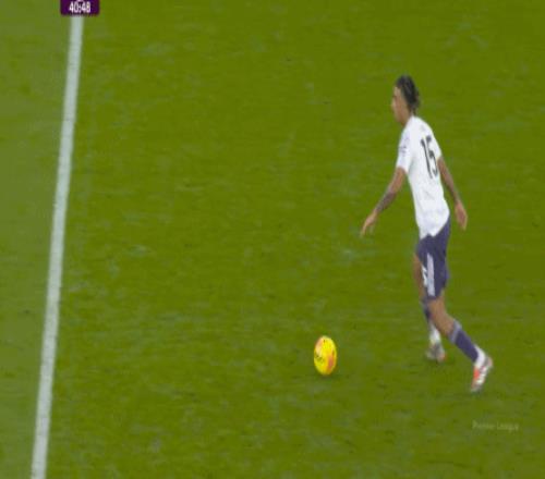 一个年轻中卫在压力下带球,身侧的队友都被维拉从身后压迫,其实只能试着直传中锋,然后希望他造个犯规,从而让海文有时间回位,连库尼亚都是如此建议的: