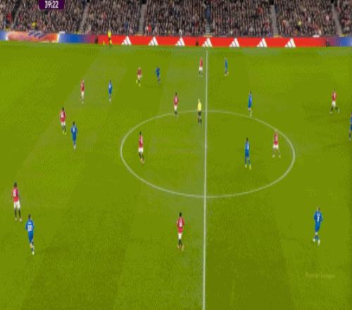 前戏是阿斯顿维拉向后处理,从而吸引曼联全员上前压迫,其中就包括达洛特,作为右翼卫的他上来压迫维拉的左后卫马特森。