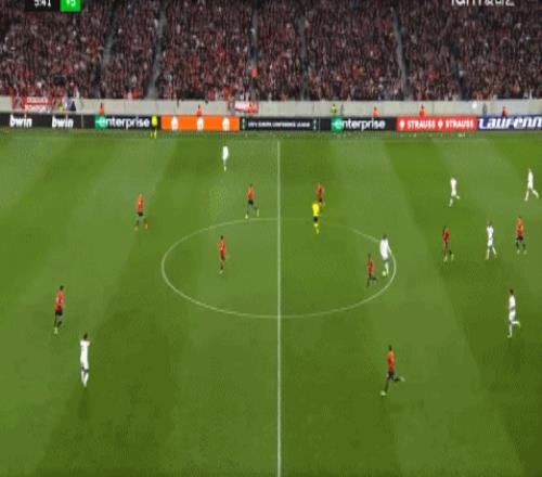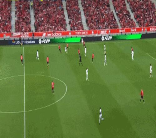 当时他在里尔主打四后卫体系里的右中卫,和三后卫的边中卫相比,位置稍微谨慎一点是正确的,但对手已经打到面前的进攻,约罗还是明显偏缩: