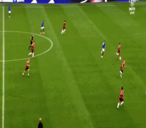 结果芒特没有顶住奥纳纳,麦金可是靠自己的手臂动作顶住了卢克-肖,然后直接斜长传找到了罗杰斯: